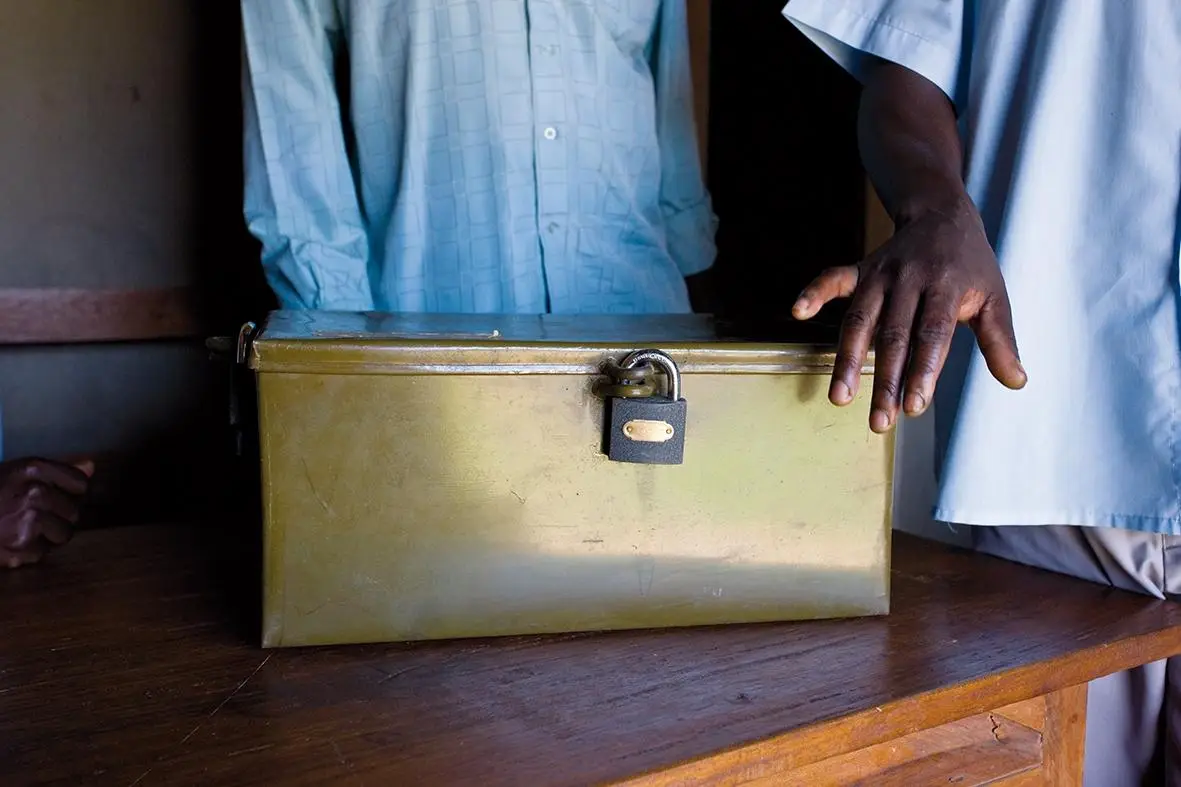 Det er bundet sammen af vores støtte til dannelsen af VSLA-grupperne. En gang om ugen mødes omkring 30 medlemmer af hver gruppe for at lave ugentlige indskud. Gemt i en fælles opbevaringsboks, hver af dem har en slags opsparingskonto.